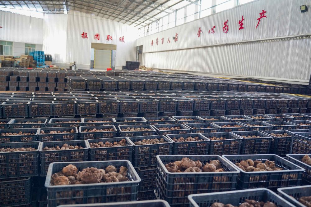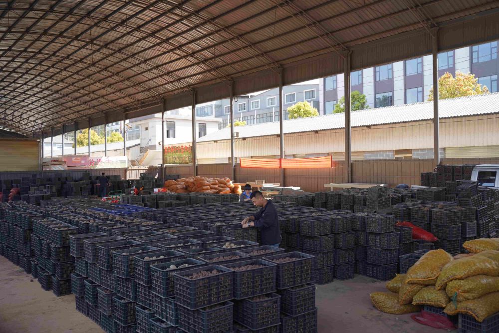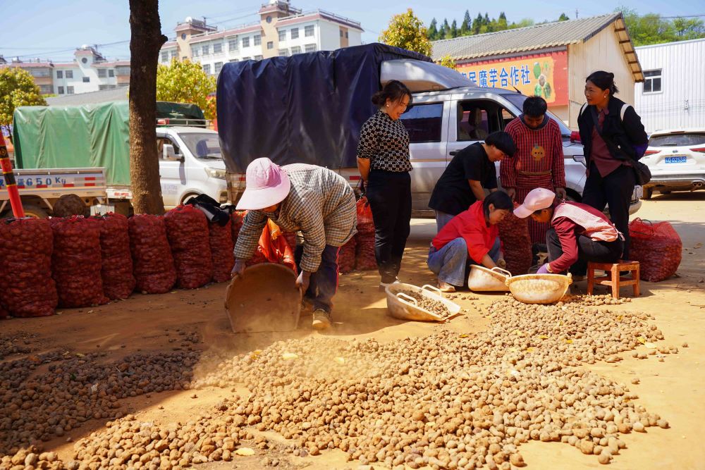 為精準對接全國各地不同的種植需求,富村鎮(zhèn)魔芋交易市場提前謀劃、科學布局,在充分調研各地氣候、土壤條件的基礎上,整合資源儲備了白魔芋、花魔芋等多個適配不同區(qū)域的優(yōu)質品種,實現(xiàn)種源“精準供給”。“我們今年儲備了雜交魔芋、白魔芋、花魔芋等芋種 8000 多噸。目前進入了這個銷售高峰期,已經(jīng)銷售了 7000 多噸。其主要銷售地區(qū)為湖北、新疆以及甘肅等地區(qū)?!备辉纯h雄升農貿有限公司市場總監(jiān)劉龍宇介紹,針對中低海拔和中高海拔地區(qū)的地域差異,專門篩選適配品種,確保各地種植戶都能買到適合本地種植的優(yōu)質魔芋種,真正實現(xiàn)春耕用種無憂。