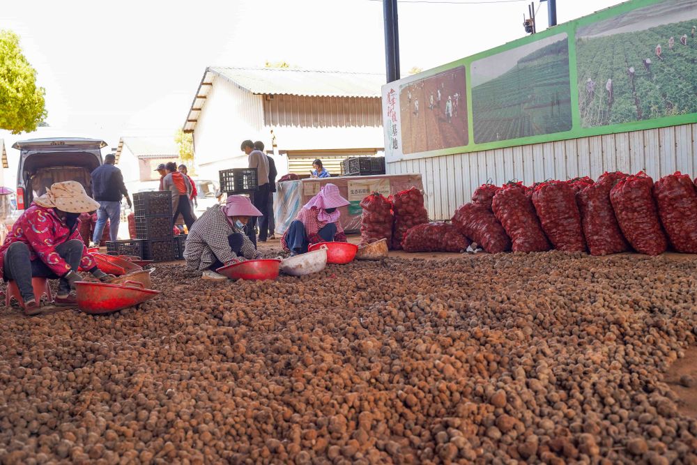 從事魔芋加工20余年的代林琴,見證了魔芋產(chǎn)業(yè)的發(fā)展變遷,從家庭小作坊到現(xiàn)代化加工廠,她對魔芋種的品質要求極高?!拔医裉熨I了20噸魔芋,主要用來加工制作魔芋精粉。”代林琴說,春耕伊始,備足優(yōu)質原料是關鍵,她的產(chǎn)品遠銷四川、重慶等地,優(yōu)質的魔芋才能保障產(chǎn)品競爭力。來自湖南的客商王金友,已經(jīng)連續(xù)7年跨越千里來到富村采購魔芋種,每年采購量均達50多噸,全部運回湖南本地種植。“這里的魔芋品質好、個頭大、產(chǎn)量穩(wěn),我們湖南當?shù)胤N植戶都很認可?!蓖踅鹩烟寡裕呐侣吠具b遠,也堅持來富源采購,就是為了讓自家春耕有好種、秋收有好產(chǎn),守住增收致富的“錢袋子”。