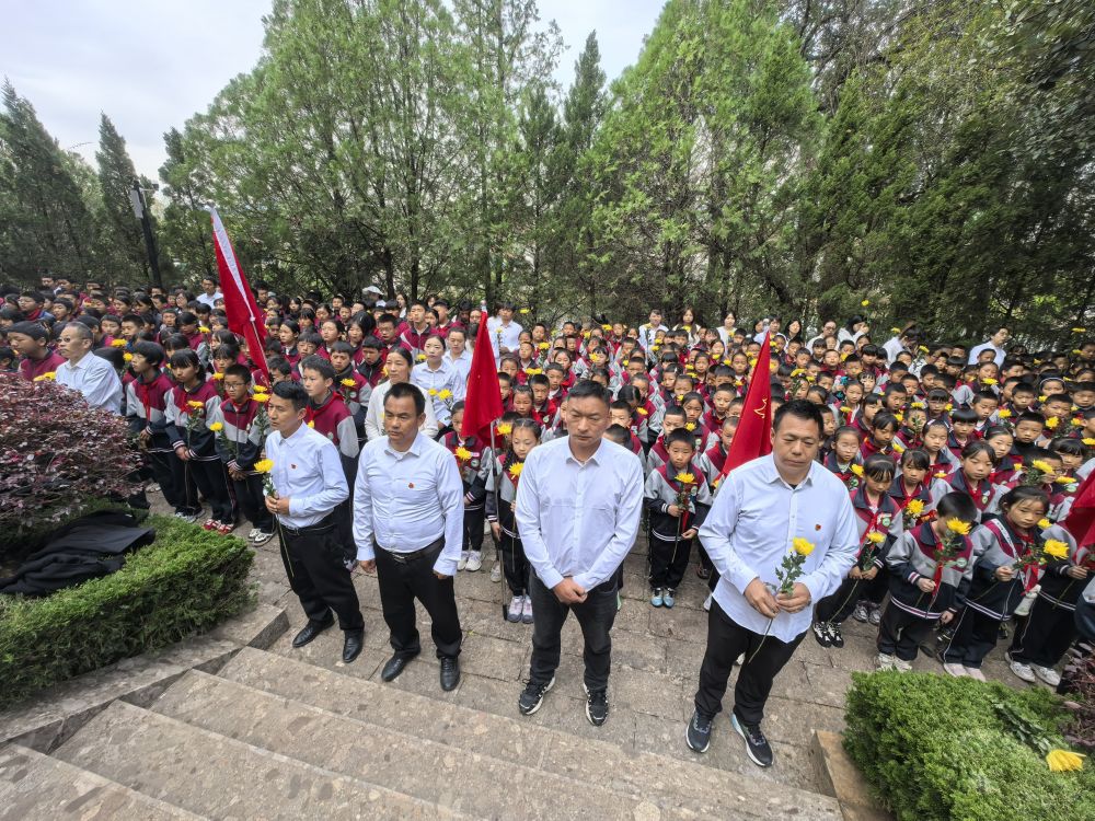 玉龍縣文筆學(xué)校教育集團(tuán)白沙中學(xué)校區(qū)2026年清明節(jié)祭掃活動(dòng)現(xiàn)場(chǎng)。(麗江融媒記者 侯瑋 攝)