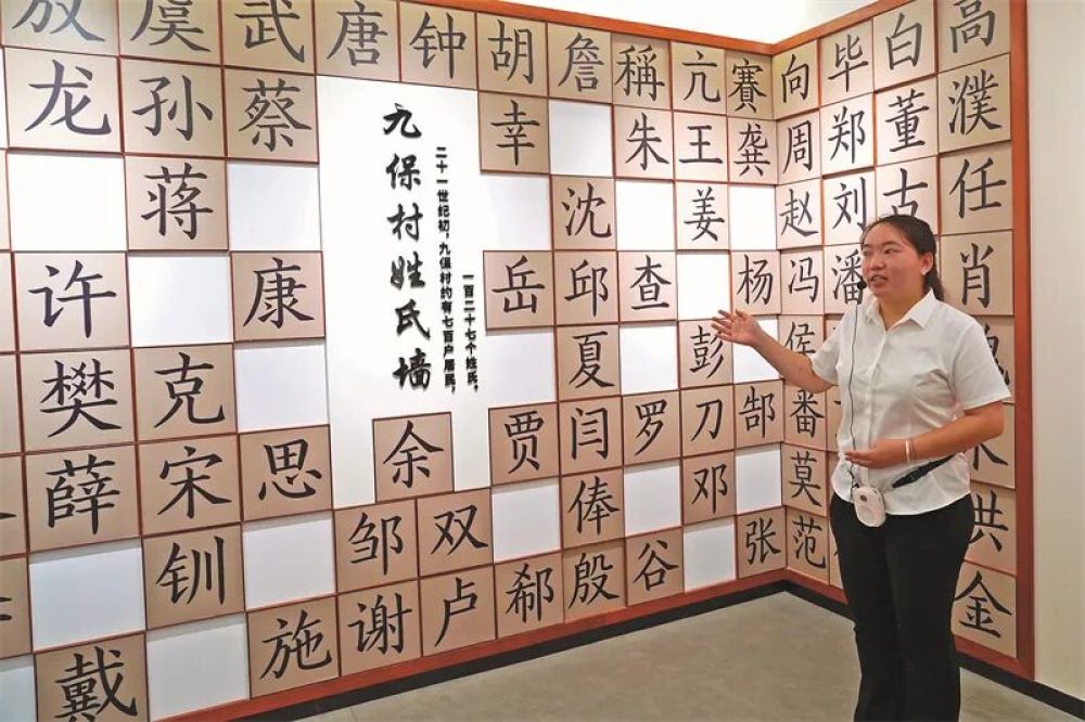 在村史館的二樓,有一面特別的姓氏墻,來參觀的人都會(huì)停下來看一看。從傣族的“刀”姓,到來自我國(guó)北方的“余”姓和“闕”姓,眾多姓氏見證了多民族交融的深厚歷史?!熬疟4瀣F(xiàn)有975戶居民,有127個(gè)姓氏。這么多姓氏,都是從各地遷徙而來的人們和本地民族交流融合形成的?!敝v解員劉小瑤介紹,“這些姓氏是九保村包容和諧精神的活化石,這面姓氏墻,不僅是九保村發(fā)展歷史的縮影,更是包容和諧精神的具象化表達(dá)。