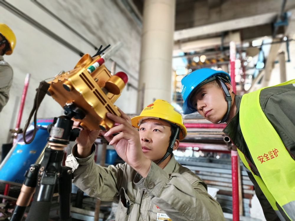??2024年4月23日,中國(guó)核電工程有限公司的企業(yè)導(dǎo)師和項(xiàng)目負(fù)責(zé)人現(xiàn)場(chǎng)指導(dǎo)朱澳(左一)。(李海萁 攝)