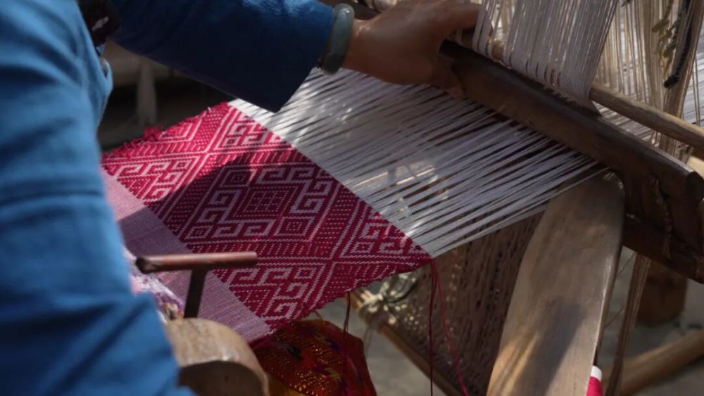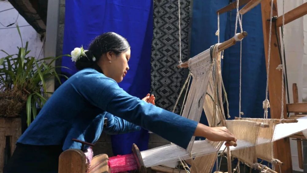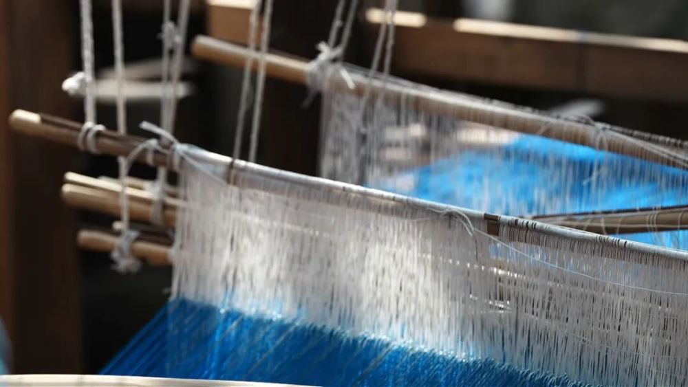 古老的木質(zhì)織機(jī)伴著絲線穿梭