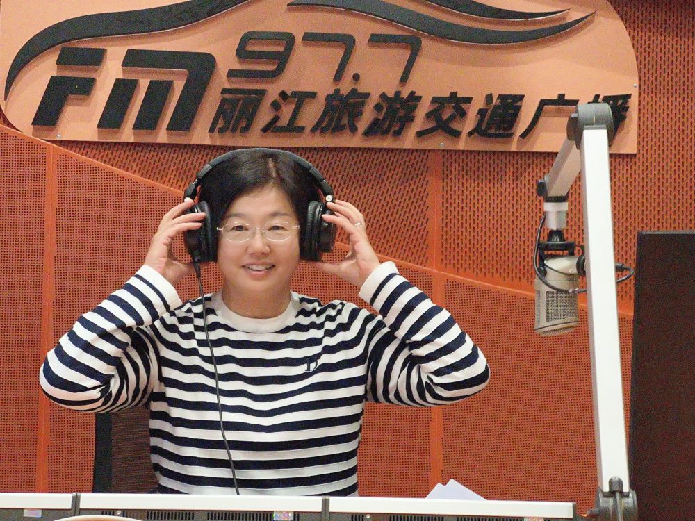 4月14日,麗江市委黨校公共管理副教授紫利群做客FM97.7麗江旅游交通廣播直播間。(麗江融媒記者 楊超 攝)