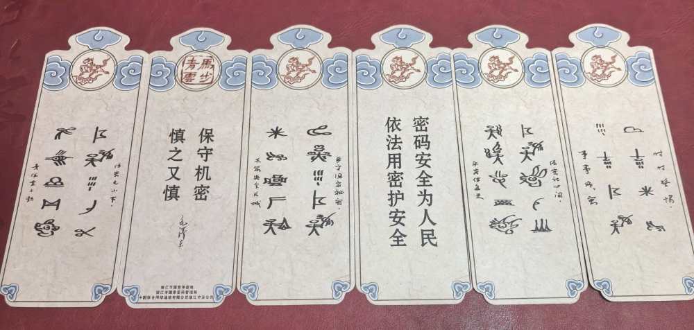 用東巴文設(shè)計的保密提醒書簽。(麗江市國家保密局 供圖)