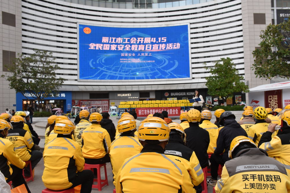 4月13日,在第十一個全民國家安全教育日來臨之際,麗江市總工會在祥和商業(yè)廣場開展“國家安全 人民至上”主題宣傳活動。此次活動由市總工會指導、市外賣配送行業(yè)工會聯(lián)合會承辦。市、區(qū)總工會,古城公安分局交管大隊及本地外賣平臺相關負責人,200名外賣騎手參與活動。