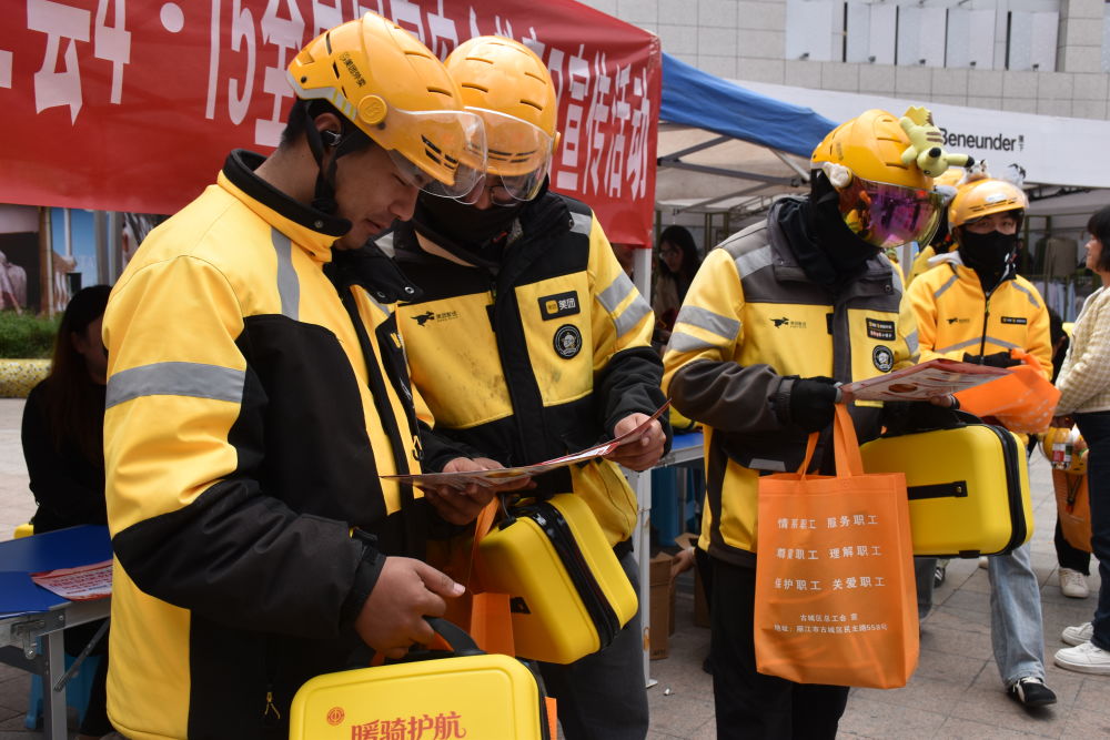 古城公安分局交管大隊民警開展交通安全專題宣傳,通過電動車實物展示、現(xiàn)場講解,普及電動車牌照規(guī)范、限速規(guī)定、文明騎行與安全配送要點,增強騎手道路交通安全意識。市、區(qū)總工會工作人員向騎手發(fā)放國家安全教育宣傳單,面對面講解總體國家安全觀,普及政治安全、網(wǎng)絡安全、社會安全等知識,引導騎手增強“國家安全、人人有責”意識。