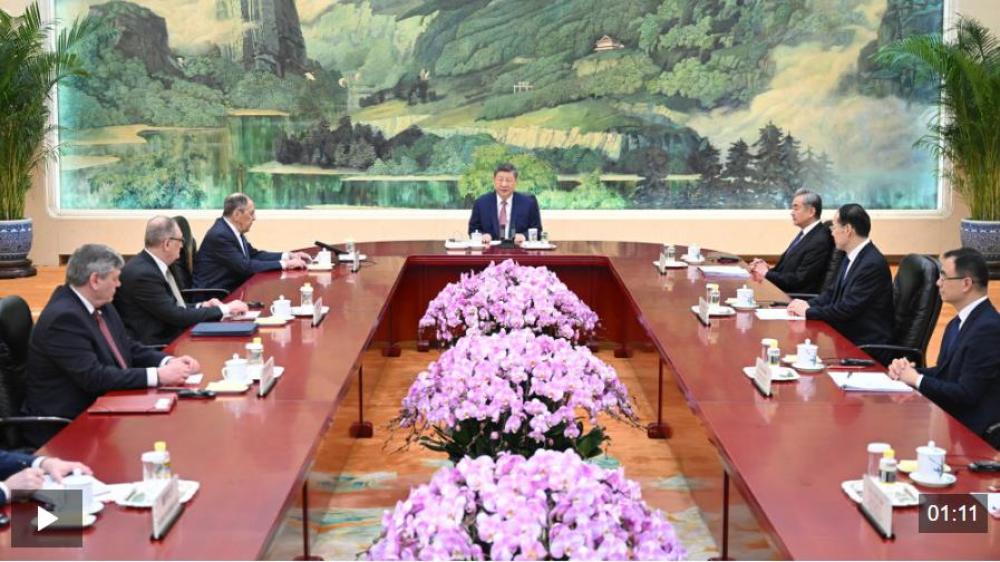 4月15日上午,國家主席習(xí)近平在北京人民大會堂會見俄羅斯外長拉夫羅夫。
