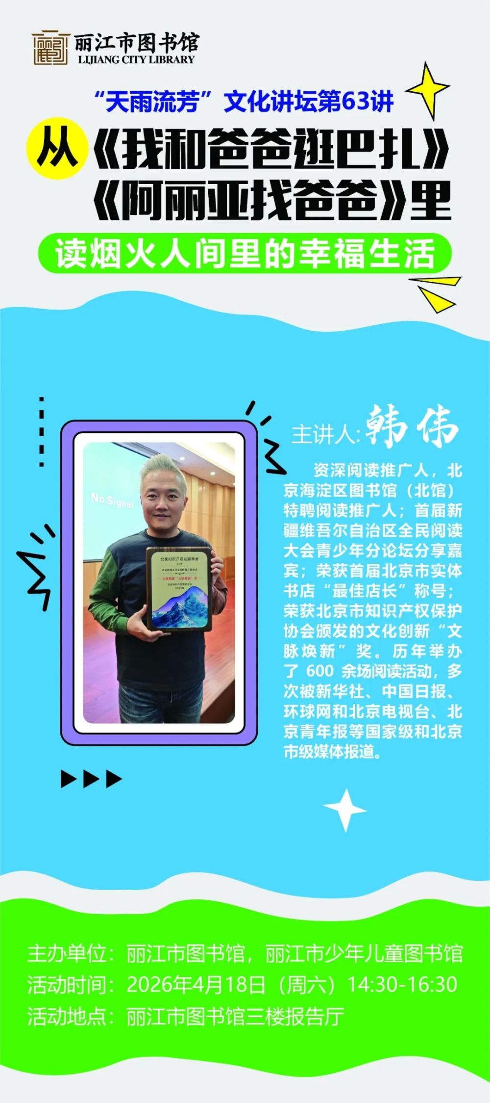 主講人:韓偉(北京海淀區(qū)圖書館(北館)特聘閱讀推廣人)