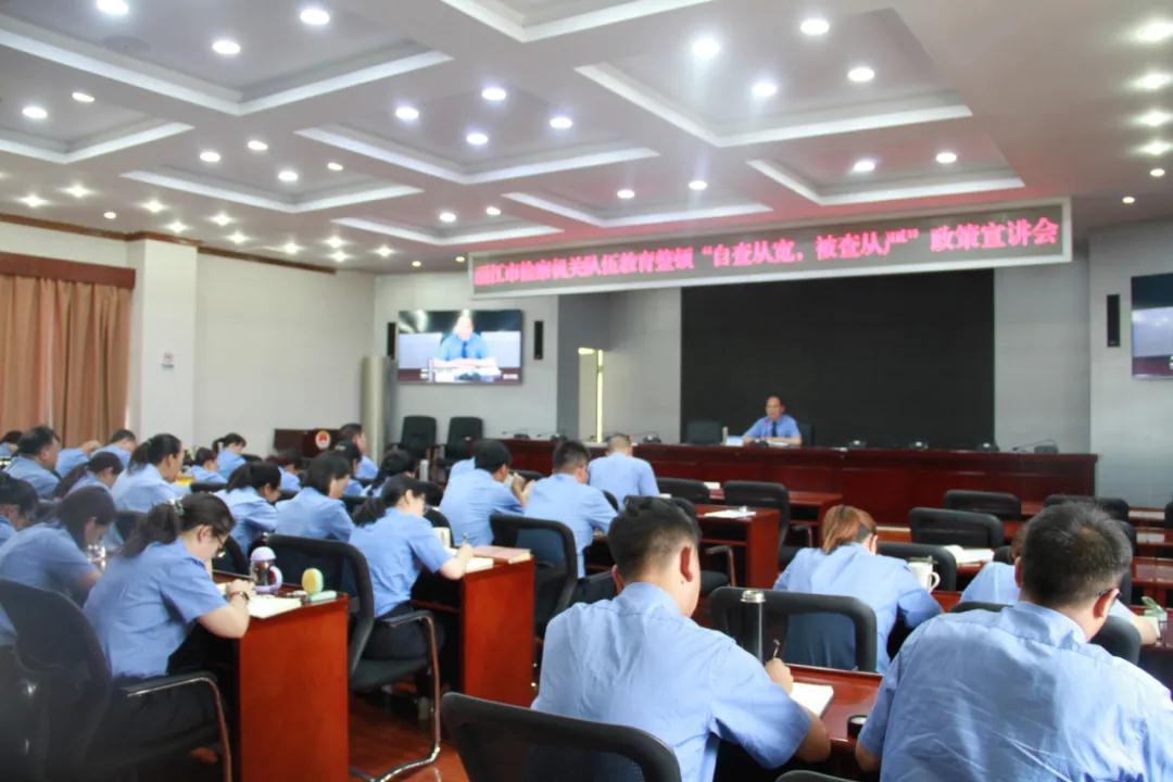 為深入推進(jìn)檢察隊伍教育整頓,4月28日,麗江市人民檢察院召開全市檢察機關(guān)“自查從寬、被查從嚴(yán)”政策宣講會,對“自查從寬、被查從嚴(yán)”政策進(jìn)行再動員、再部署。會議以視頻會議的形式召開至基層檢察院,全市檢察人員參加了會議。