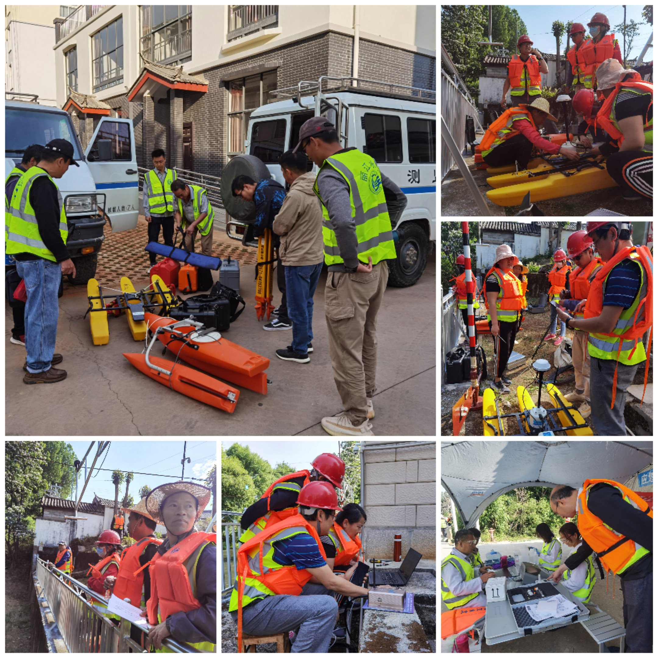 本次應(yīng)急演練模擬:4月28日凌晨,古城區(qū)漾弓江流域普降暴雨、局部大暴雨。凌晨7:00,大東、甘海子、古城、木家橋等7個(gè)雨量站已連續(xù)4小時(shí)累計(jì)降雨量均超100㎜,且降雨仍然持續(xù),漾弓江可能出現(xiàn)超10年一遇大洪水。受強(qiáng)降雨影響,漾弓江局部水體逐漸呈墨黑色向下游擴(kuò)散,可能對(duì)下游水體水質(zhì)產(chǎn)生影響。云南省水文水資源局麗江分局接到汛情后,及時(shí)成立應(yīng)急指揮部、通知應(yīng)急處置專家組進(jìn)行會(huì)商,并于早上8:00啟動(dòng)Ⅳ級(jí)應(yīng)急響應(yīng),調(diào)動(dòng)應(yīng)急隊(duì)伍,奔赴木家橋支援開展應(yīng)急測(cè)報(bào)工作。