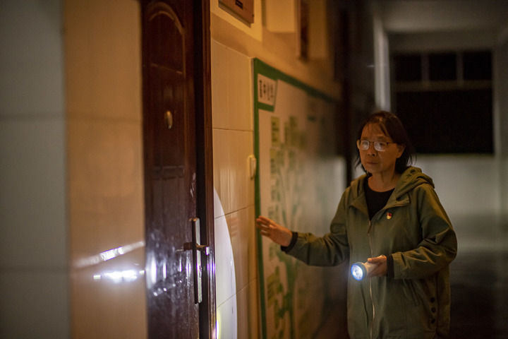 22點(diǎn)38分,張桂梅在華坪女子高級(jí)中學(xué)進(jìn)行夜間的安全巡查。(3月24日攝)