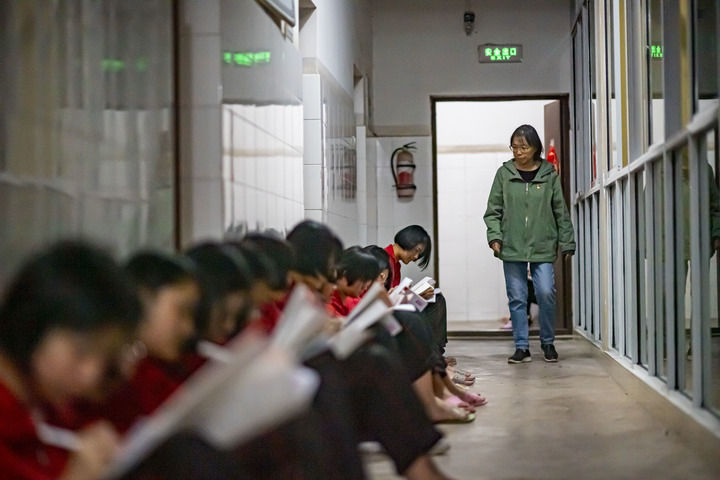 在學(xué)生起床早讀之前,她要把教學(xué)樓樓道的燈一盞盞打開(kāi)。“女孩子怕黑,山上蛇也多,我先把燈打開(kāi),姑娘們就能安心來(lái)早讀。”張桂梅說(shuō)。