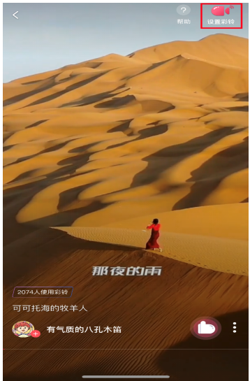 打開咪咕音樂APP—>音樂—>視頻彩鈴—>搜索麗江生物多樣性視頻彩鈴《絢麗多彩》—>點擊一鍵設為彩鈴按鈕。