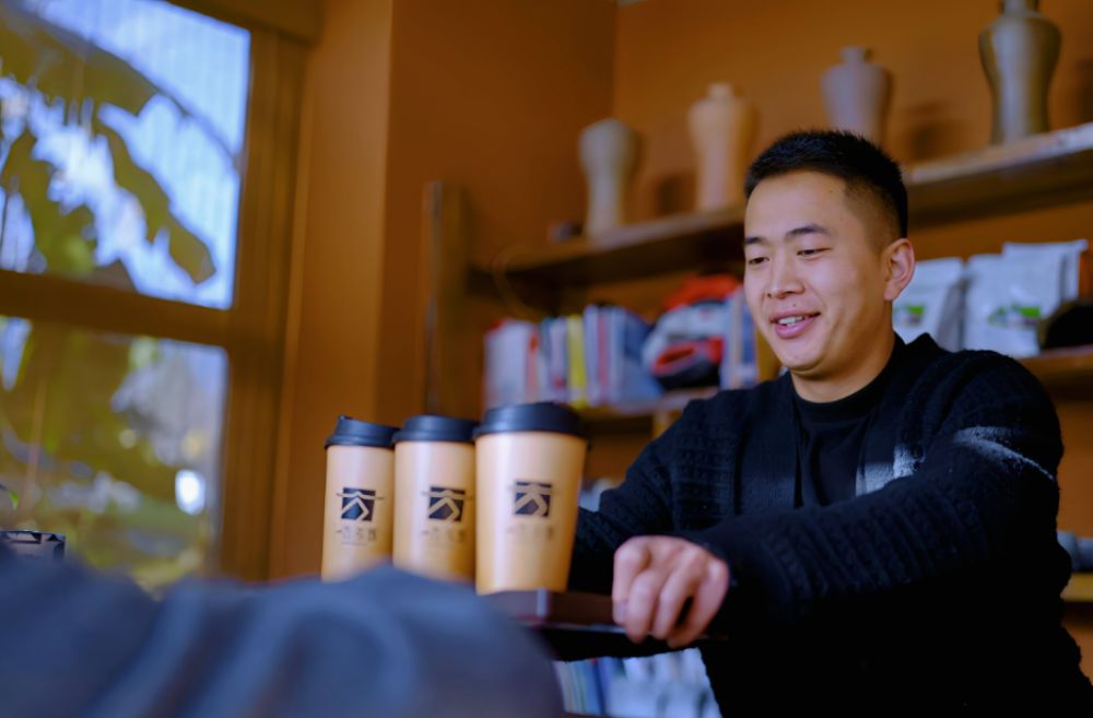 楊鈞宇在碗窯村“土陶居”咖啡屋。臨翔區(qū)融媒體中心 供圖
