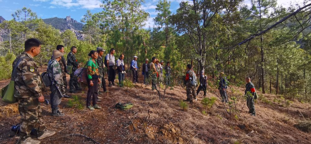 和玉忠向護(hù)林員講解巡護(hù)知識(shí)。(受訪者 供圖)