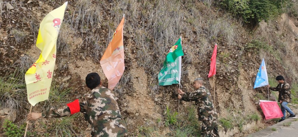和玉忠在林區(qū)道路旁增設(shè)標(biāo)識(shí)旗。(受訪者 供圖)