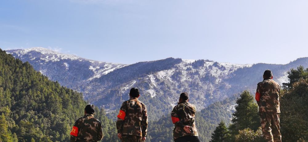 和玉忠?guī)ш?duì)在深山里巡邏。(受訪者 供圖)