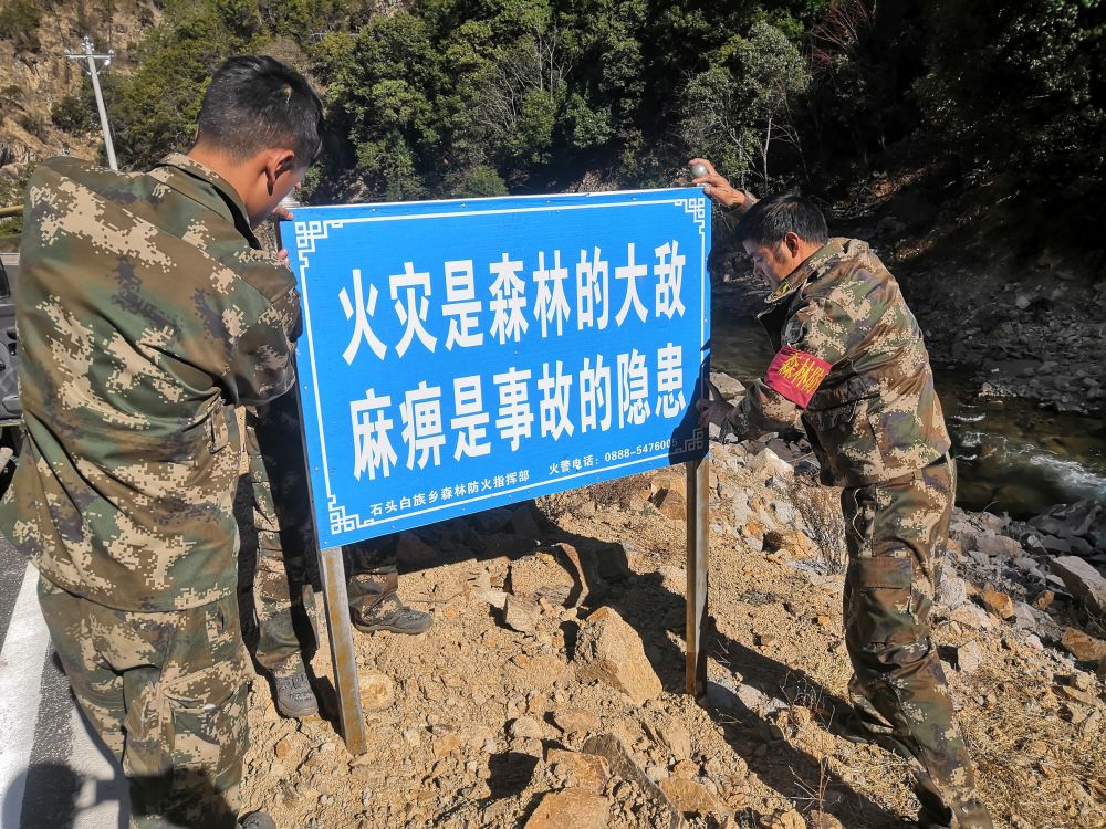 巡山過程中加固標(biāo)識(shí)牌。(受訪者 供圖)