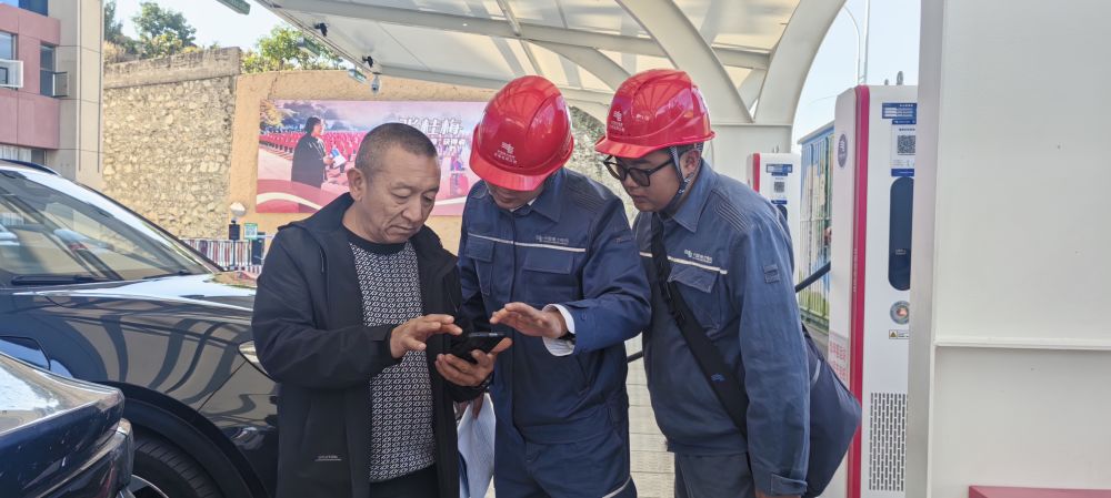 工作人員向車(chē)主詳細(xì)介紹充電設(shè)施的使用方法。(麗江融媒記者 趙麗軍 攝)