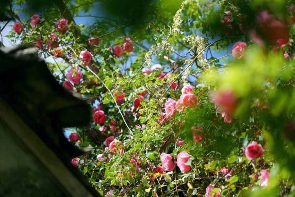 薔薇是最后來(lái)的,性子最慢,但也最會(huì)打扮。老院子的白墻太高太素,薔薇就順著墻往上爬,攀到墻頭再垂下來(lái),開出一面花墻。粉白的小花,密密匝匝鋪滿整面墻,遠(yuǎn)遠(yuǎn)看去像一幅畫。風(fēng)一吹,香氣飄得老遠(yuǎn)老遠(yuǎn),走過(guò)的人總要停下來(lái),深吸一口氣,再走。那股香不是濃烈的,是幽幽的,像遠(yuǎn)山上飄來(lái)的霧,抓不住,卻一直在。
