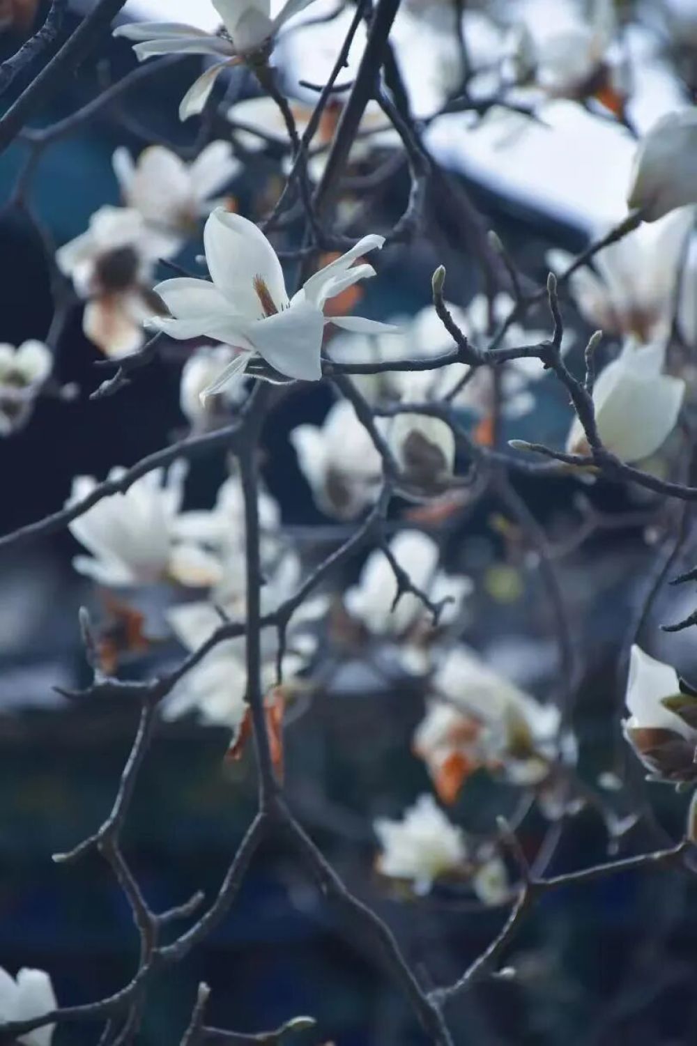 先是玉蘭。二月底的風(fēng)還有些料峭,玉蘭已經(jīng)端端正正地坐在枝頭。那花是有些脾氣的,不開則已,一開便是滿樹——白的像雪,紫的像霞,一朵朵都朝著天,孤傲得很。你在黑龍?zhí)?,抬頭就能望見它們從老院子的白墻青瓦后面探出頭來(lái),像一群白鴿蹲在枝頭,隨時(shí)要撲棱棱飛走似的。走過(guò)的人總要停下來(lái),仰著脖子看一會(huì)兒,也不說(shuō)話,就那么靜靜地站著。這時(shí)候,冬天積攢在骨頭縫里的寒氣,好像就被那花瓣上的柔光一點(diǎn)一點(diǎn)化開了。