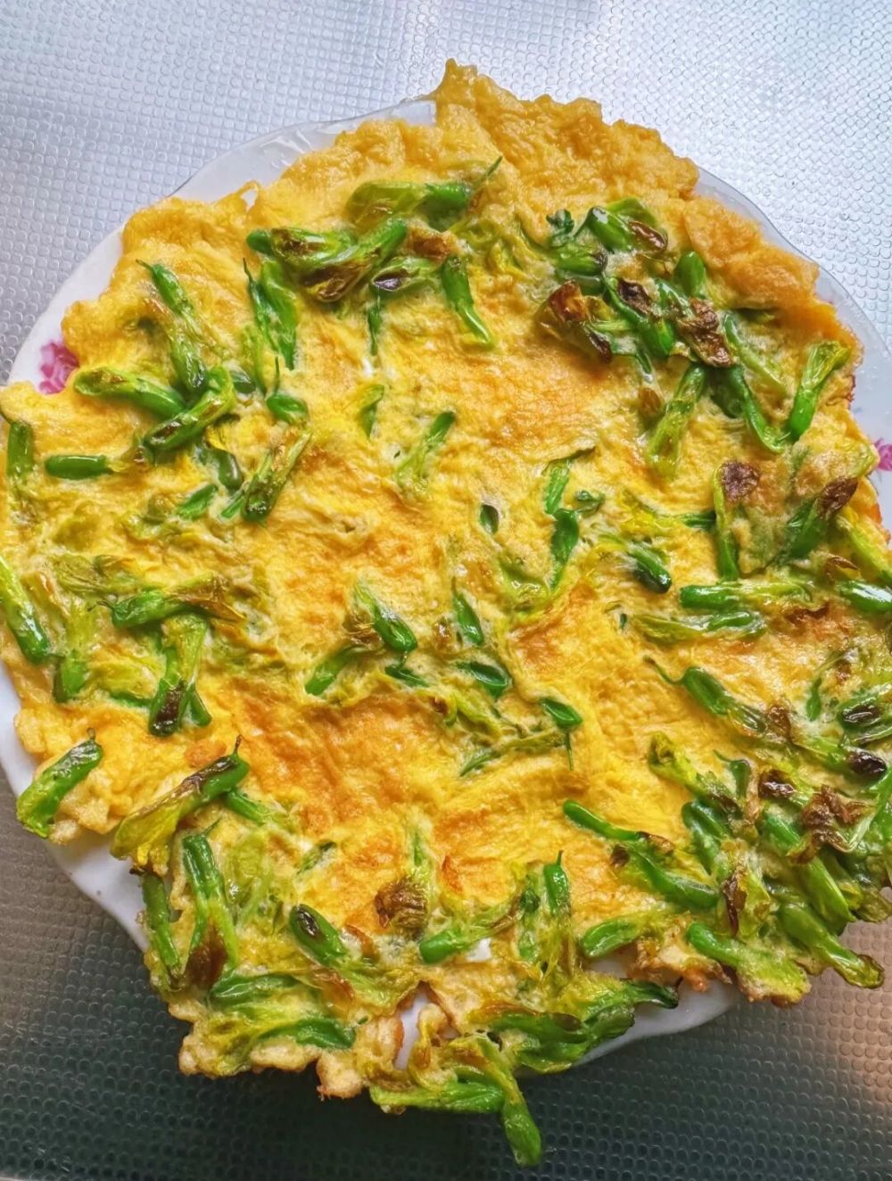 金雀花開得最早。黃澄澄的小花,一串串掛在帶刺的枝頭,像一群嘰嘰喳喳的小雀兒。納西阿媽挎著竹籃去采,要挑那些將開未開的,這種最嫩、最新鮮。采回來(lái)洗凈的金雀花和土雞蛋一起攤成餅,金雀花混合蛋液在熱氣里舒展開來(lái),黃綠相間盛在白瓷盤里,吃一口,嫩嫩的,滑滑的,帶著一股清甜,像把整個(gè)春天含在嘴里了。那股甜不是糖的甜,是花蕊里的甜,是露水里的甜,是陽(yáng)光曬過(guò)的甜。