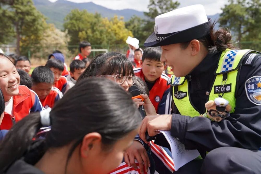 “拉姆說交通”宣講小分隊走進校園,開展交通安全知識宣講。(麗江交警 供圖)