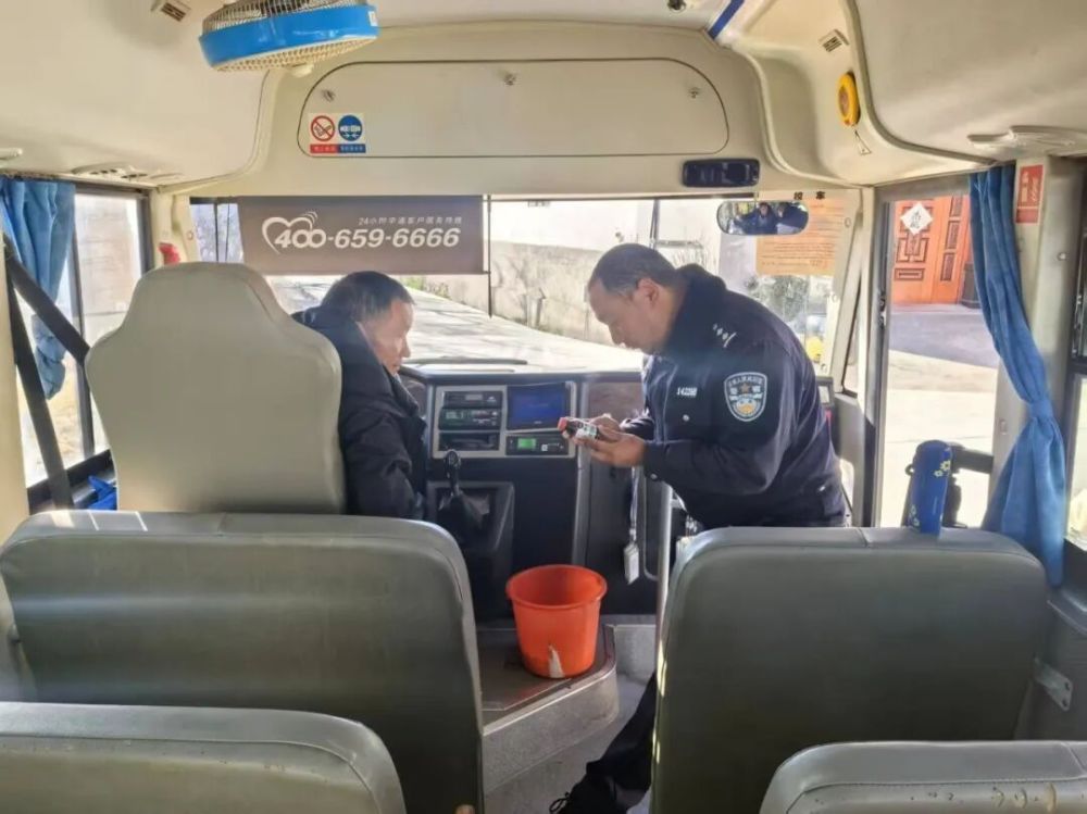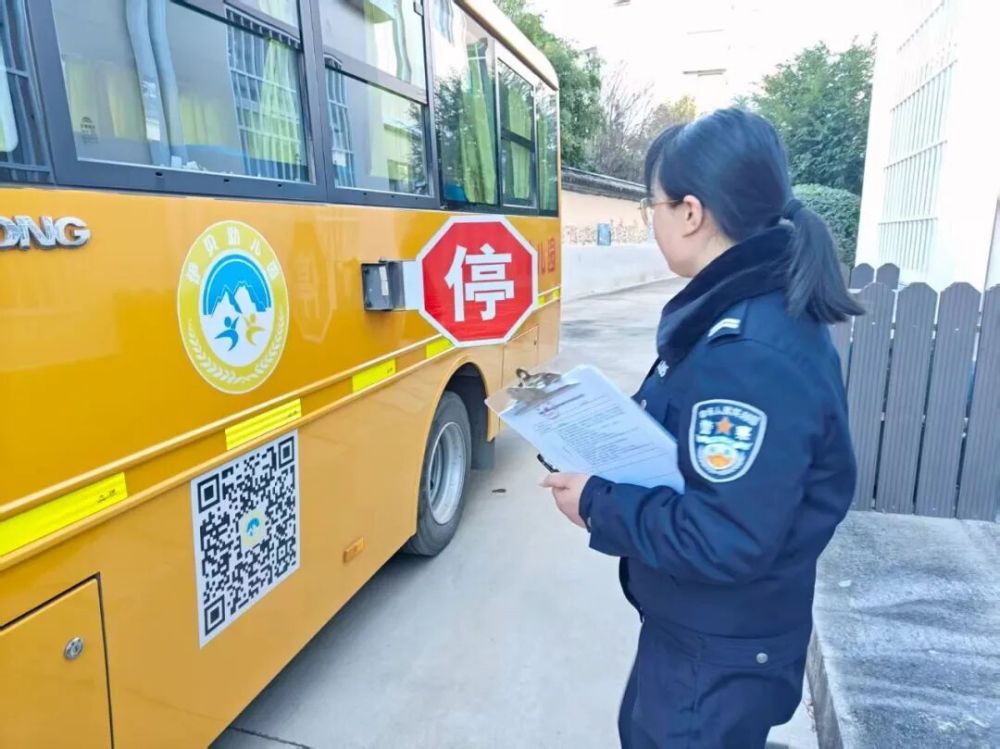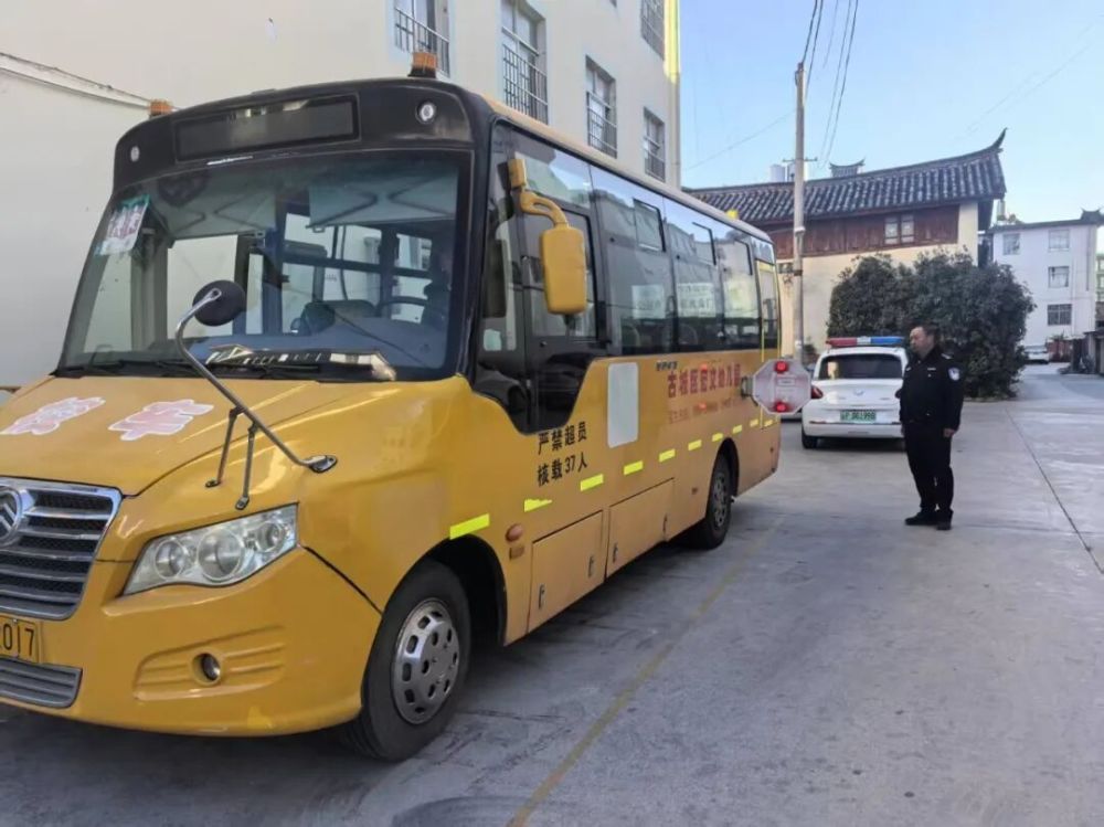 交警對接送學生的校車開展安全“體檢”,并嚴格檢查校車管理臺賬等。(麗江交警 供圖)