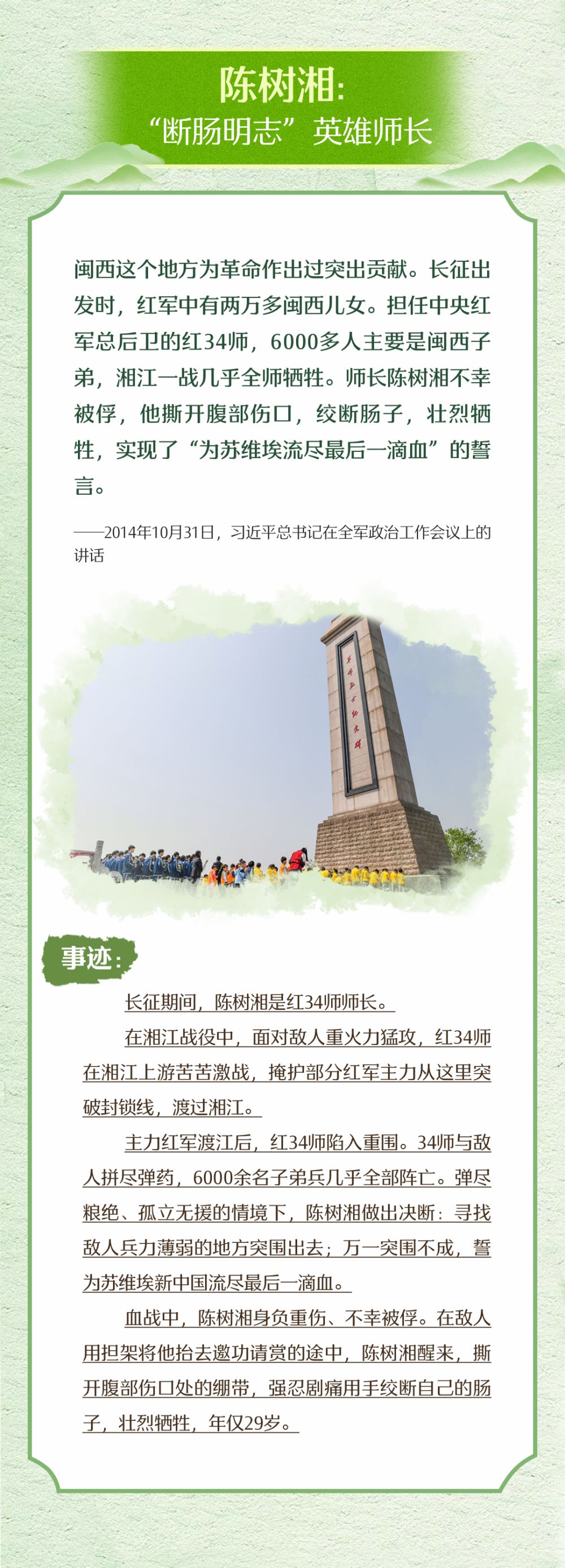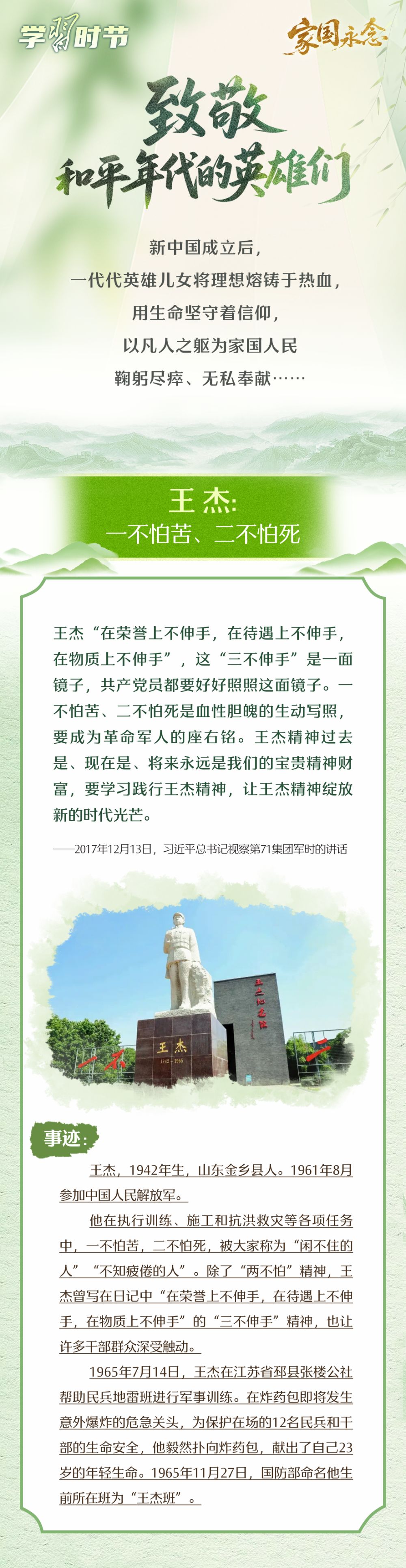 “天地英雄氣,千秋尚凜然?!绷暯娇倳浿赋觯瑢σ磺袨閲?、為民族、為和平付出寶貴生命的人們,不管時代怎樣變化,我們都要永遠銘記他們的犧牲和奉獻。清明節(jié),讓我們重溫習近平總書記緬懷革命先烈以及和平年代英雄們的深情話語,一起學習英烈事跡,賡續(xù)精神血脈,凝聚前行力量。